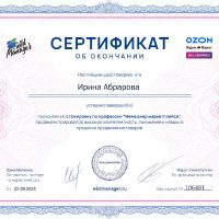 Сертифицированный менеджер маркетплейсов с подтвержденной квалификацией и богатым опытом успешного взаимодействия с ведущими платформами электронной коммерции. Специализируюсь на комплексном управлении ассортиментом, логистическими процессами и клиентским сервисом для максимизации прибыли продавцов и минимизации рисков. Я умею выстраивать эффективные стратегии развития торговых точек на маркетплейсах, увеличивать показатели продаж и улучшать рейтинг магазинов путем детального анализа конкурентной среды и потребностей потребителей.