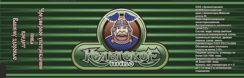 Необходимо разработать этикетку для пшеничного пива. Название "Кельтское". Основные ассоциации: качественное немецкое пиво. кельты, войны. Целевая аудитория мужчины от 30-50 лет.
