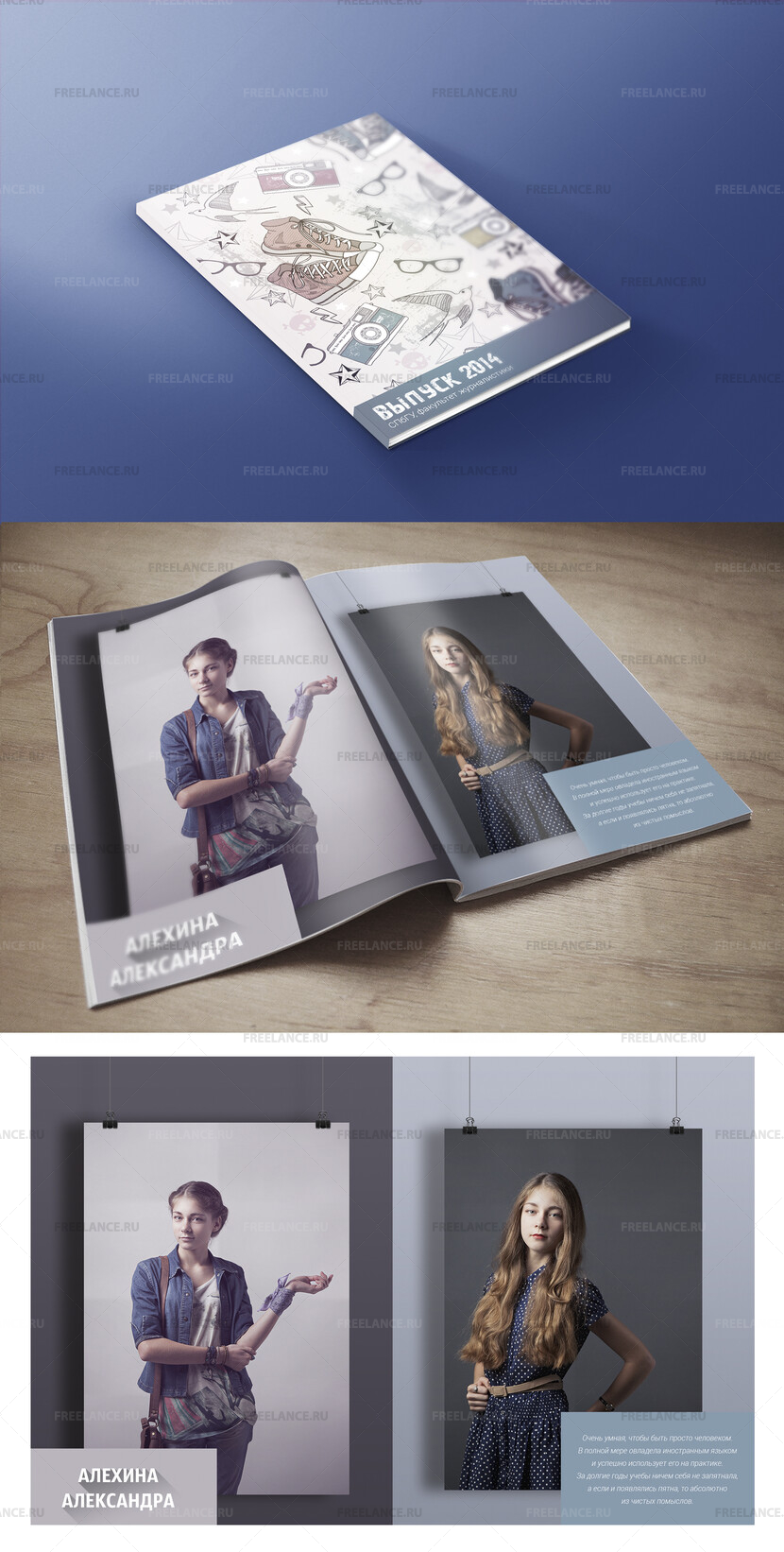 Необходим дизайн одного разворота и обложки выпускного альбома для школьников и студентов. Целевая аудитория - выпускники, возраст 17-23 лет.