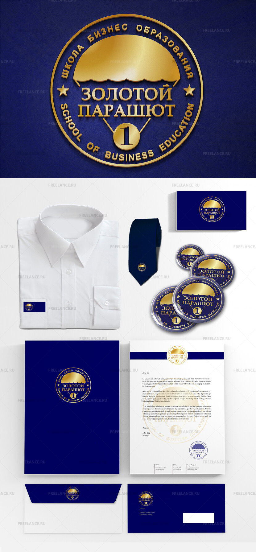 Создание логотипа, фирменного стиля и рабочей документации для открывающейся Школы Бизнес Образования "Золотой парашют"