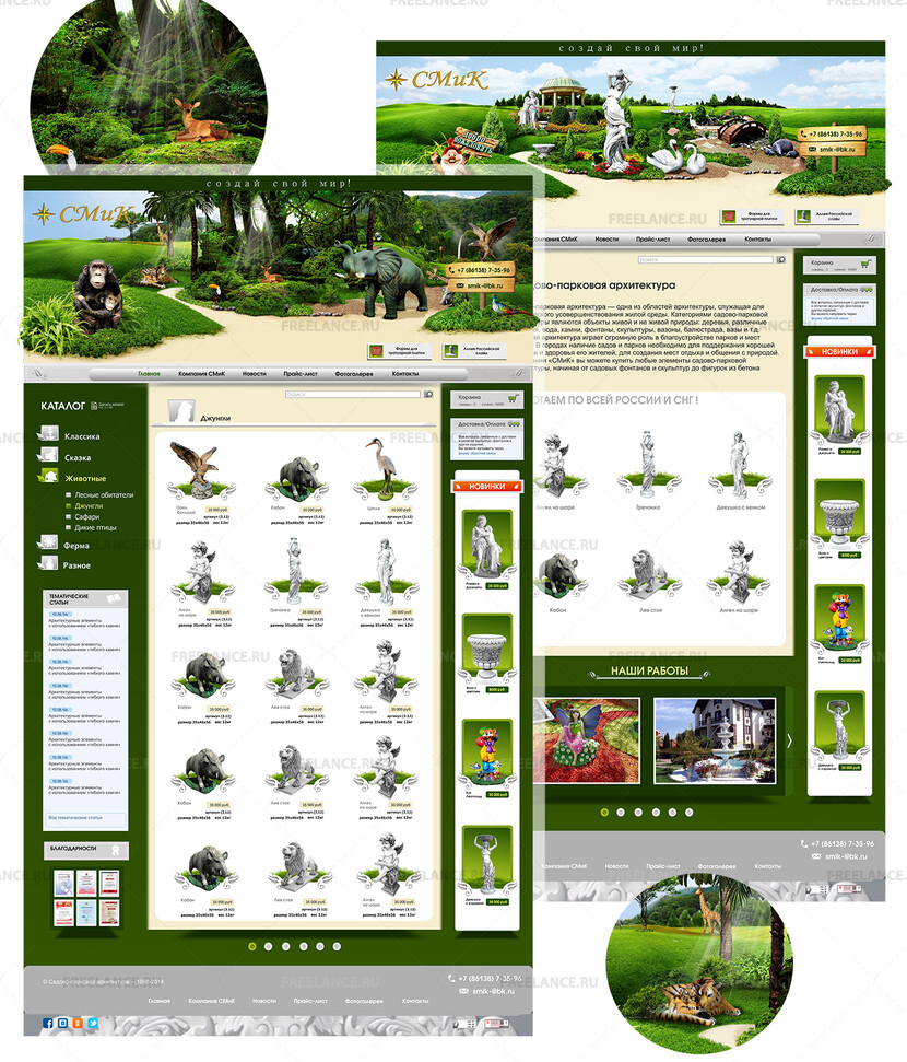 Приятный современный дизайн, та же удобная навигация как есть, другие иконки продукции, две ссылки на два других наших сайта, НОВИНКИ обязательно.