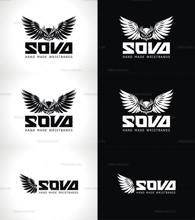 Необходимо создать логотип компании SOVA. Компания занимается созданием кожаных браслетов в стиле casual, байкерском стиле. Браслеты изготавливаются вручную, с применением натуральных материалов: 100% кожи, металла. Все браслеты унисекс, делаются в том числе по индивидуальному дизайну наших клиентов. Целевая аудитория: от 16 до 40 лет. На логотипе должна быть сова (брутальная, подобная эскизам тату).