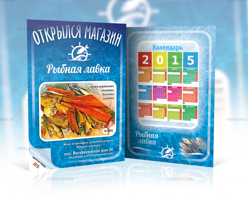 Добрый день! Планируется открытия Рыбной лавки, необходима разработка дизайна внешнего вида палатки , а так же макет листовок для промоутеров .