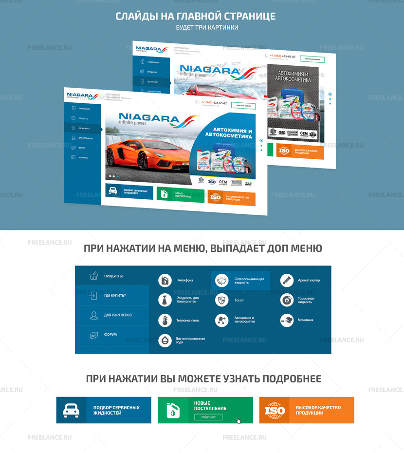 Требуется разработать дизайн сайта (www.niagara-auto.ru) компании, занимающийся производством автохимии и автокосметики.