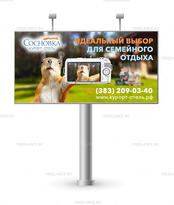 Основная цель – донести до потребителя, что отдых должен быть с пользой для здоровья и интересным для всех членов семьи. Баннер должен вызывать исключительно положительные ассоциации, должен запомниться слоган компании «Идеальный выбор для семейного отдыха».