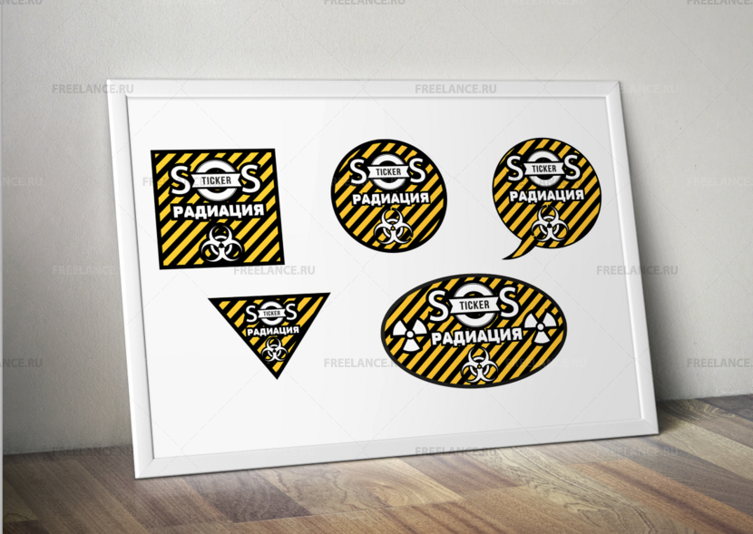 Разработка коллекции из 9 видов стикеров (2 квадратных, 2 треугольных, 2 круглых, 2 овальных и 1 произвольной формы) на основе готового логотипа.