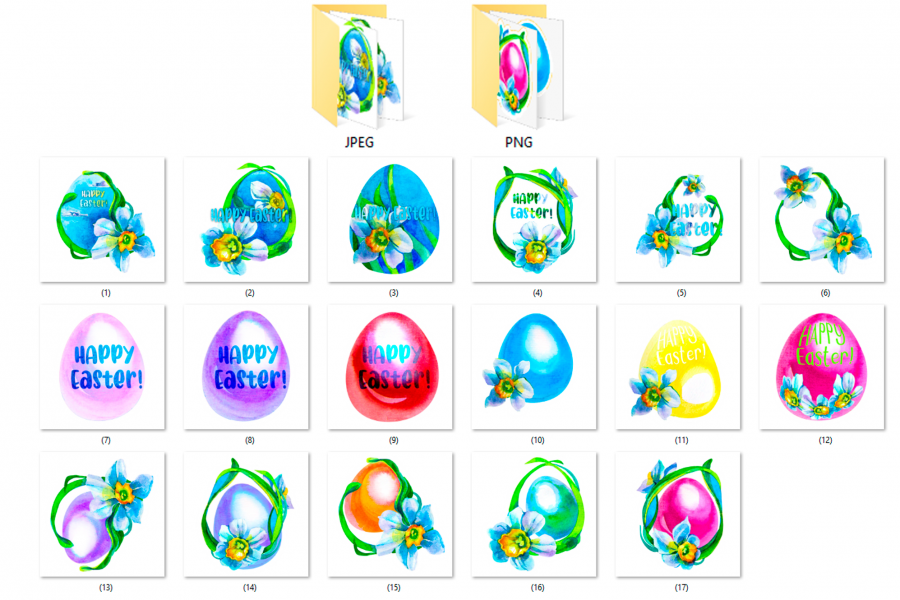 17 Пасхальных НАКЛЕЕК/ Акварельные Пасхальные яйца и Нарциссы