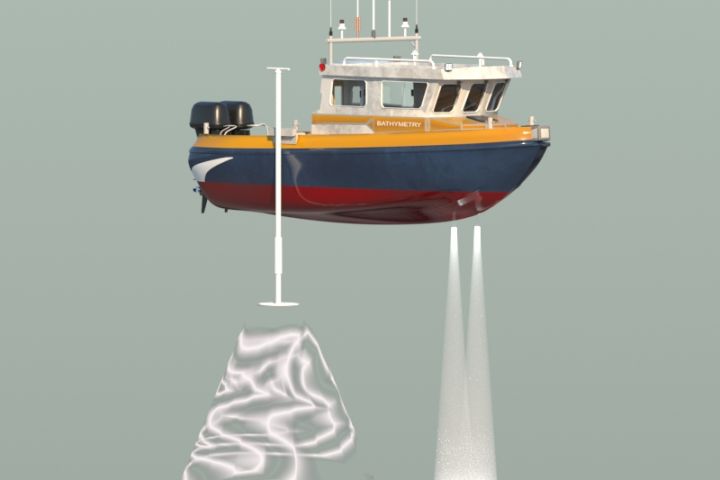 Схема промерного катера для измерения глубины. Батиметрия. Модель содержит измерительное оборудование, измерительные лучи и фонари, установленные двигатели, другие внешние объекты, некоторые внутренние объекты кабины и участок воды и рельефа дна. Файлы с расширениями .max, .3ds, .obj, .dwg и библиотека материалов. Количество полигонов (файл 3d max): 39478. Количество вершин: 36267. Версия программы: 3ds max 2018. Тип рендеринга: CoronaRender. Профильно-популярная стоковая модель (пользовательская лицензия). Цена: 3300 руб.