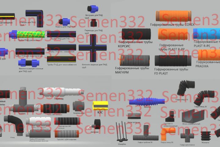3D модели труб. Архив содержит в себе 4 подвида труб: ПНД ГОФРА МЕТАЛЛИЧЕСКИЕ ТРУБЫ В ИЗОЛЯЦИИ Прочие типы труб (на обложке показаны не все трубы)