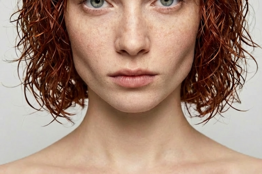 Это рыжеволосая модель с выразительной внешностью, сочетающей естественную красоту, модную эстетику и универсальность образов. Внешность разработана так, чтобы она выглядела как реальный профессиональный fashion-персонаж: гармоничные пропорции лица, выразительные глаза, аккуратные черты, визуально дорогая подача в кадре.