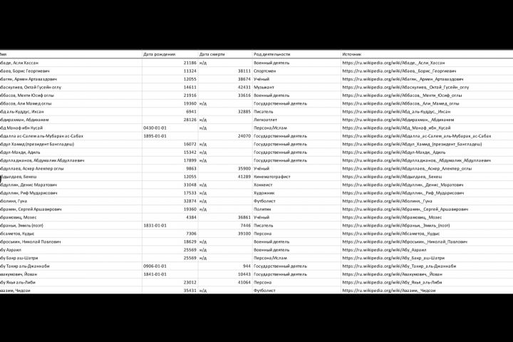 Продаётся база родившихся в определённый день месяца года столетия собранная из wiki