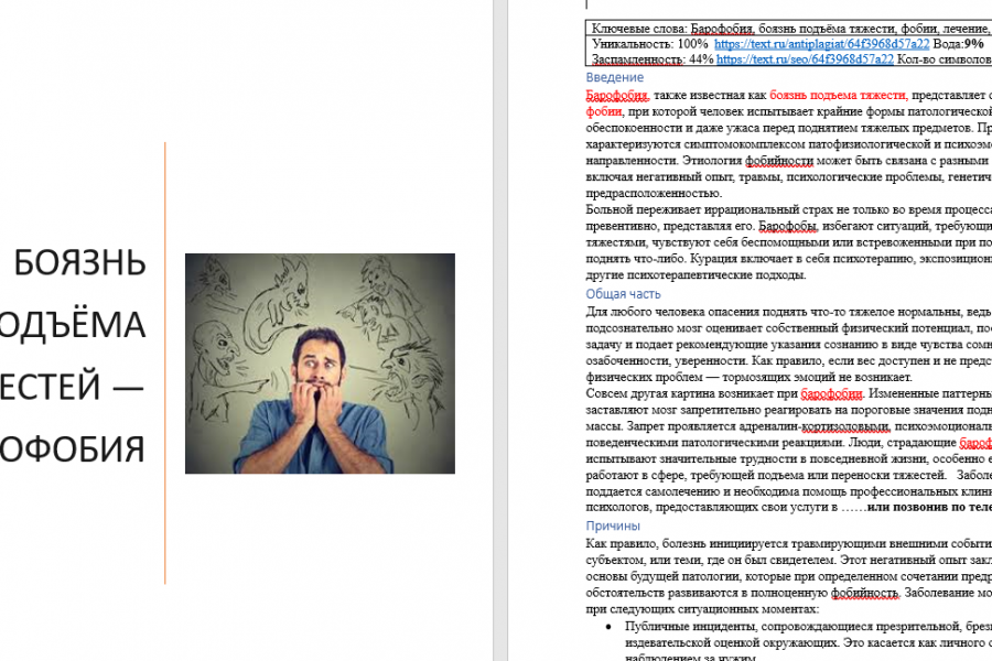 Статья содержит подзаголовки: введение, общая часть, причины, симптомы, лечение и заключение. Кол-во символов без пробелов:8289 Уникальность 100% по текст.ру - зафиксирована, Вода:9% Заспамленность:44%
