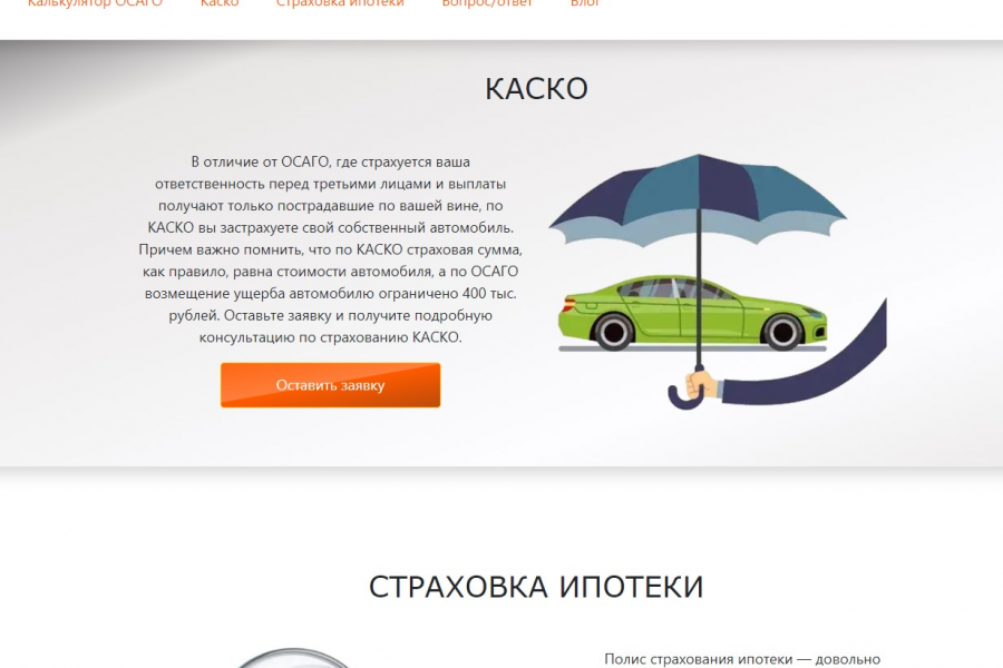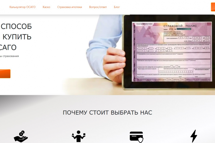 Вместе с сайтом передается хостинг (оплата отдельно 69р. в месяц), домен, инструкция по управлению контентом, инструкции по регистрации в личном кабинете страхового агента, обучение от страхового брокера, техническое сопровождение при передаче.
