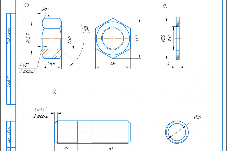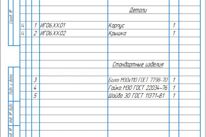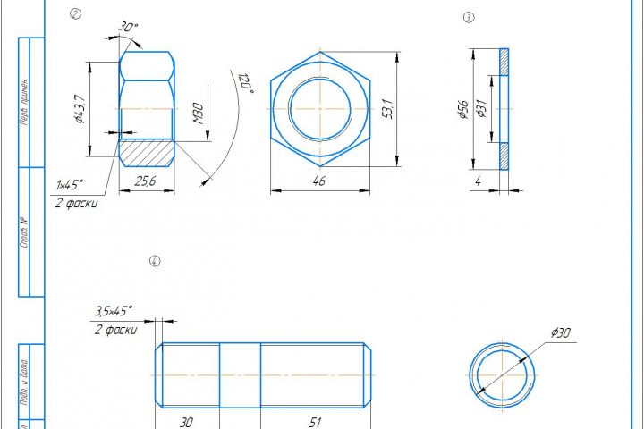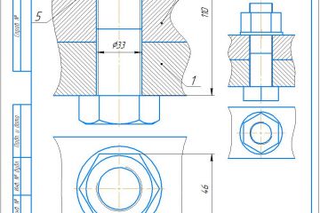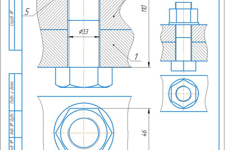 Чертеж. Болтовое соединение, спецификация, крепежные соединения формат А4, Компас версия 20