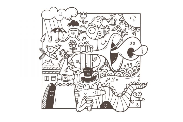 Векторная сюрреалистическая раскраска для взрослых м детей. Продаётся в форматах ai,eps, jpg, png.