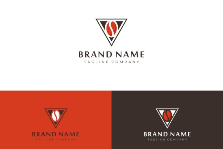 Логотип стилизованное кофейное зерно в центре треугольника, идеальный логотип для компании связанной с производством и продажей кофе, логотип для кофейни.