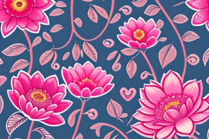 Ярко-розовые цветы на сером фоне. Минималистичный цветочный паттерн. Модный иллюстрированный рисунок для принта на канцтоварах, ткани, обоях, упаковке, для фирменного стиля.