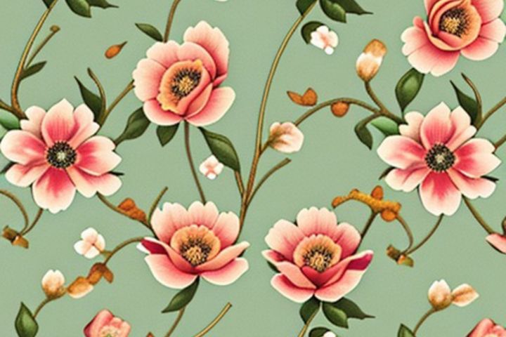 Нежные цветы на зеленом фоне. Минималистичный цветочный паттерн. Модный иллюстрированный рисунок для принта на канцтоварах, ткани, обоях, упаковке, для фирменного стиля.