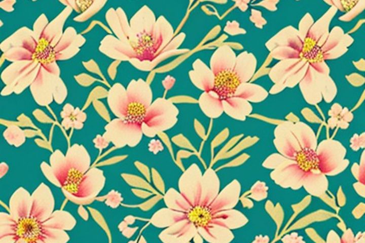 Нежные цветы на зеленом фоне. Минималистичный цветочный паттерн. Модный иллюстрированный рисунок для принта на канцтоварах, ткани, обоях, упаковке, для фирменного стиля.
