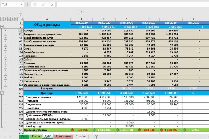 Я готов адаптировать и внедрить в вашей организации систему таблиц в Excel - ДДС, который содержит блоки на выбор: учёт доходов и расходов, кассовые остатки по дням, CRM и ведение проектов, итоговый отчёт о затратах, прибыли и убытках (смотрите скрины).