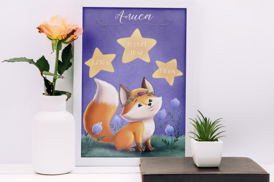 Продаю: Детская метрика лиса - готовая работа на продажу :14874