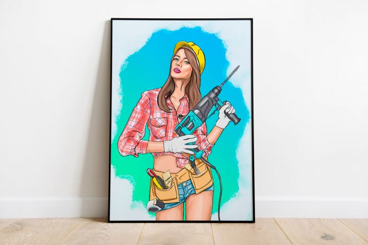 Иллюстрация привлекательной девушки с прозрачным фоном. Подходит для рекламы в сфере строительства. Растровая графика. Файлы в формате png и psd