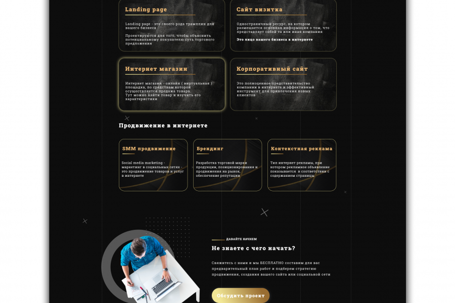 Готовый дизайн для агентства по разработке сайтов. Строгий макет порадует ценителей искусства, которые привыкли не распыляться. При приобретении макета данный макет будет передан копирайтеру для переформулирования концепции под Вас. Доработка проекта входит в стоимость.