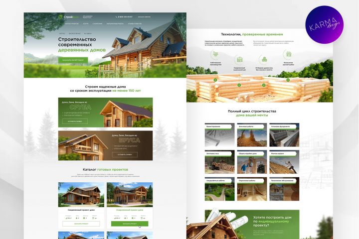 Теплый и красочный дизайн сайта для строительной компании реализован в "русском" стиле. Отлично подойдет для специалистов, которые занимаются строительством домов из бруса и сруба, запах дерева будет просачиваться через каждый элемент макета. Дизайн сайта полностью уникальный, без использования нейросетей, разработан с нуля, используются стоковые изображения, исходники в Figma.