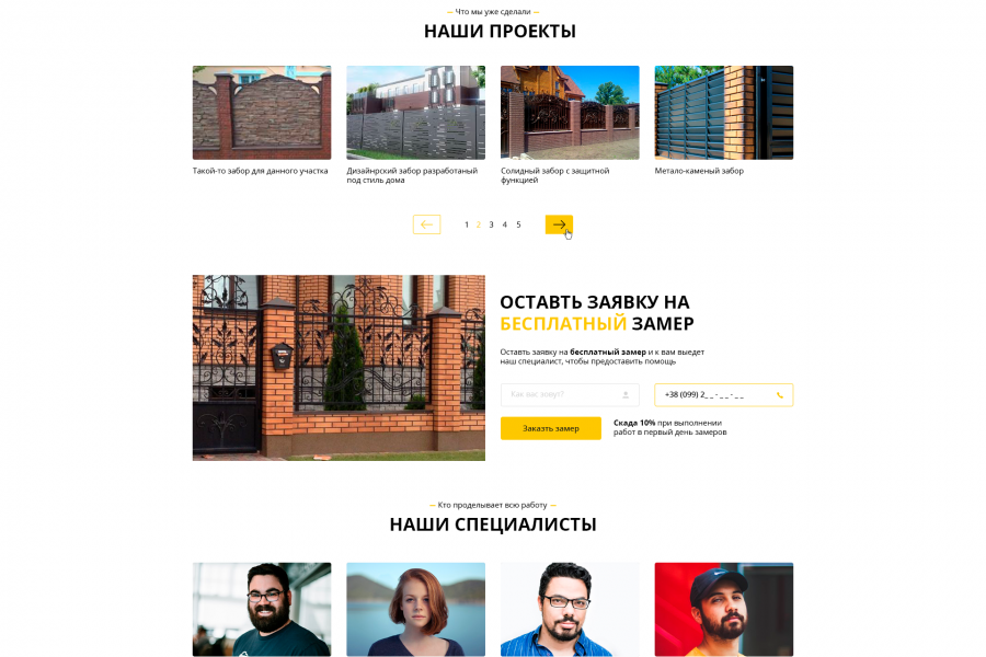 Landing page для продажи каких-либо услуг(как пример - установка заборов) Без верстки. Шаблон в PSD в десктопном разрешении. Полную работу можно посмотреть здесь: https://freelance.ru/nniki/denrey-3722386.html