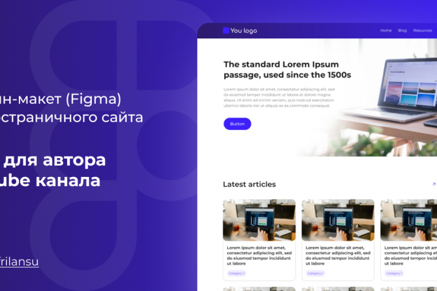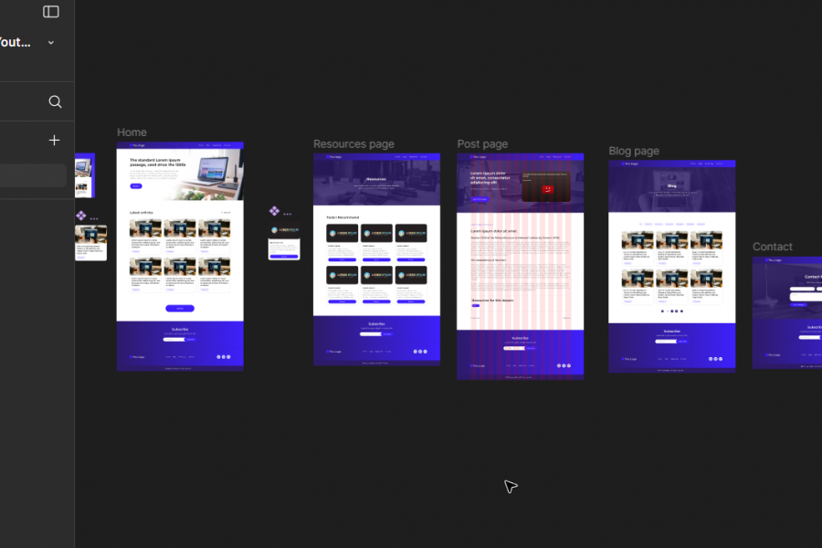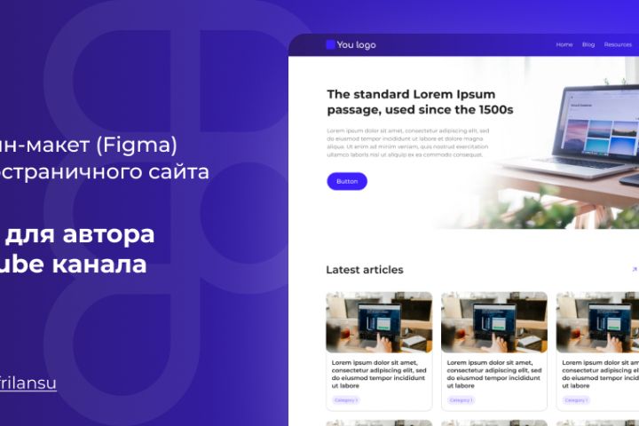 Макет многостраничного сайта в Figma по теме "блог для автора ютуб канала". Макет на английском языке. Версия - Descktop, для вёрстки на Wordpress Elementor.