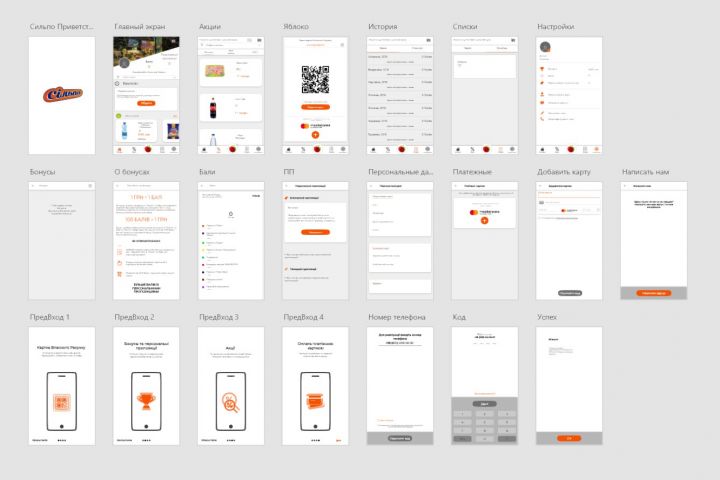 Шаблон дизайна мобильного приложения, сделанный под украинскую сеть продуктовый гипермаркетов "Сильпо". Шаблон выполнен в Adobe Xd при помощи Adobe Photoshop.