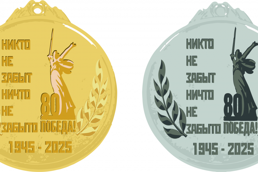 Дизайн памятных медалей, посвящённых 80-летию победы. Медали в двух цветах, золотой и серебряный. Посвящается детям, ветеранам и участникам ВОВ.