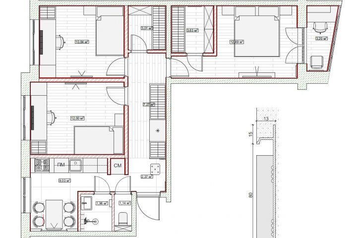 Дизайн-проект 3-х комнатной квартиры. Проект полностью готовый (электрика, мебель, развертки, визуализация)
