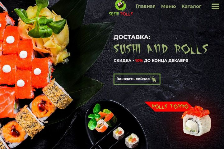Продам Дизайн сайта Landing page sushi and rolls PSD красивый и уникальный дизайн сайта