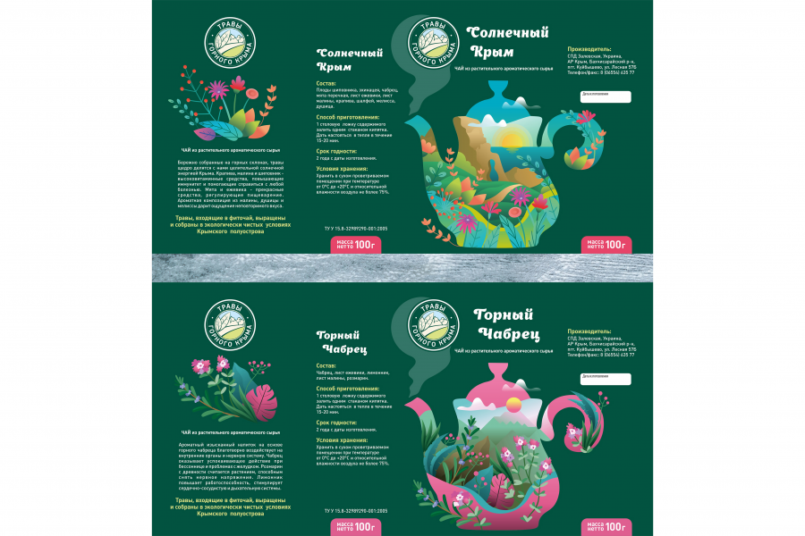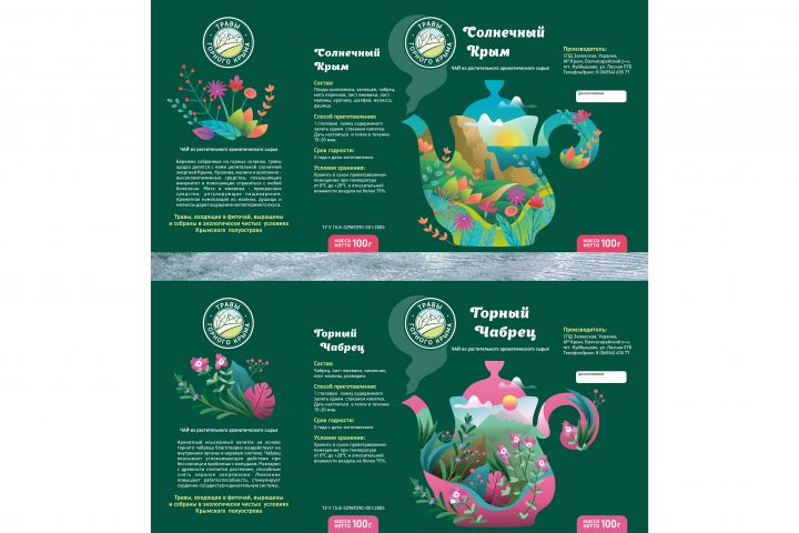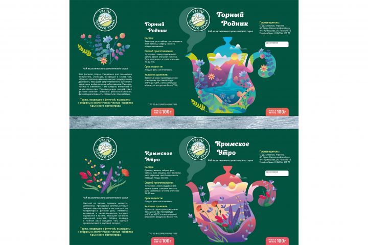 Дизайн упаковок для линейки фито-чая был разработан по ТЗ компании "Травы горного Крыма". Произведу любые изменения в макетах под вашу торговую марку.