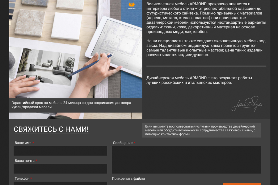 Готовый макет Лендинга (landing page) дизайнерском мебели под заказ. возможно редактирование под вас. [Figma]