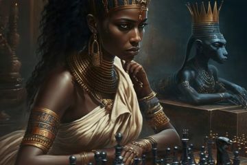 древний египтянин, черный фараон, играющий в шахматы, интеллект,...