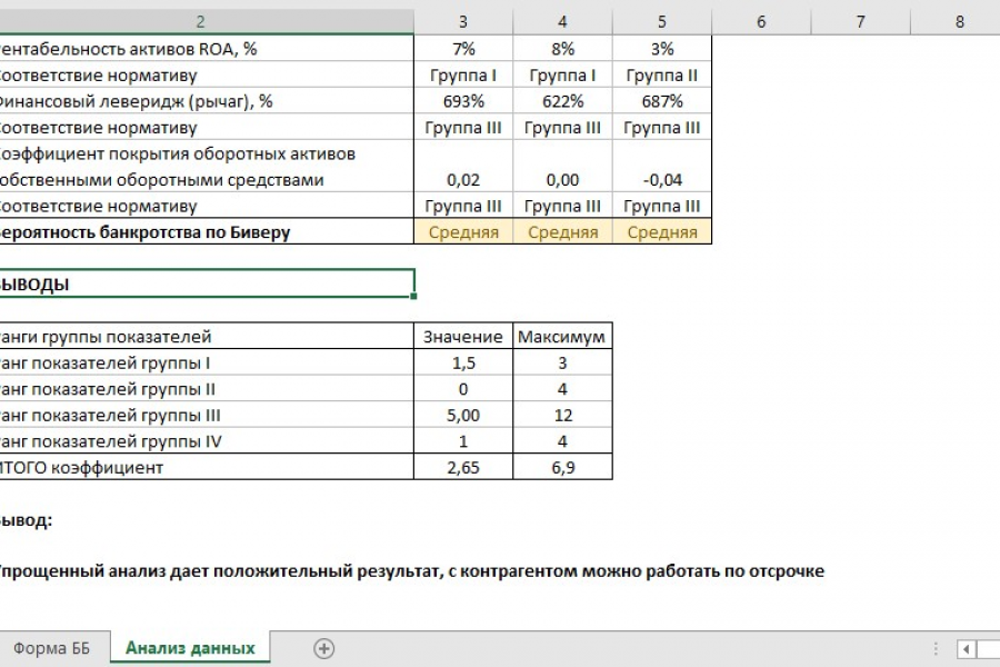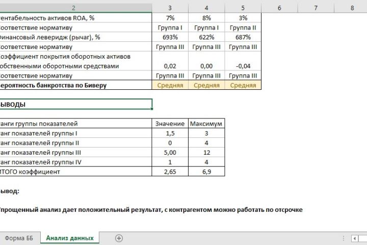 Таблица для экспресс-анализа финансов контрагента с целью предоставления отсрочки платежа на основе Бухгалтерского анализа и Отчета о прибылях и убытках. Хороший инструмент для первичной оценки контрагента отделом продаж.