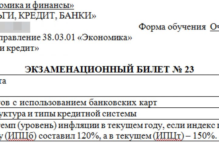 Продаю: Экзаменационный билет 23 по дисциплине "ДЕНЬГИ,КРЕДИТ,БАНКИ"
