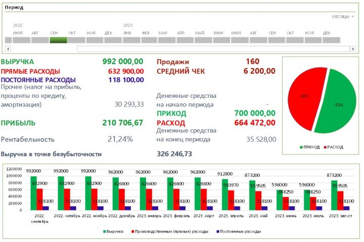 Представляю Вашему вниманию готовое решение по оцифровке Вашего бизнеса, модель представлена в формате Excel. Вам необходимо заполнить свои данные в требуемые ячейки и обновить сводную таблицу, тем самым Вы получаете Отчет о прибылях и убытках (ОПиУ), Отчет о движении денежных средств (ДДС) и интерактивный отчет на 1 календарный год.
