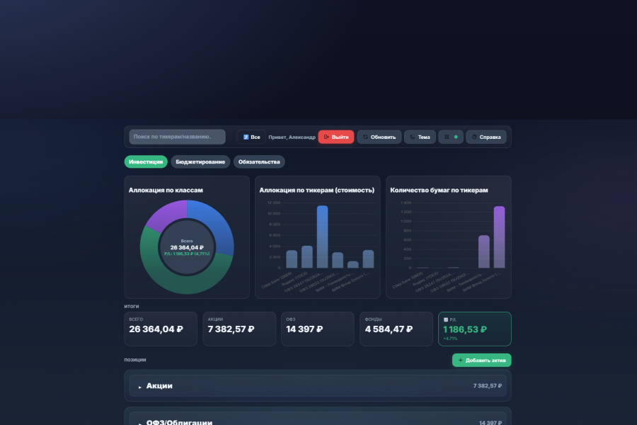 Продается готовый исходный код веб-приложения для управления личными финансами и инвестициями - FinFlow (Portfolio & Budget Management System).