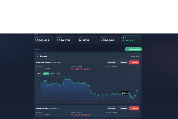 Инвестиционный модуль с интеграцией Tinkoff Invest API для автоматического получения котировок