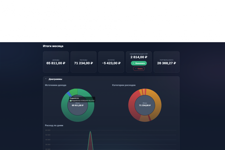 Бюджетирование: учет доходов/расходов, управление счетами, месячная аналитика