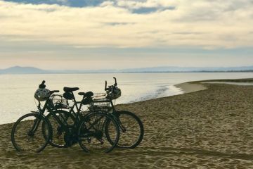 Велосипеды на берегу моря в лучах заката