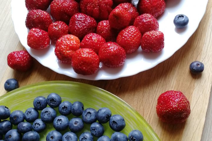 Фотография "Клубника и голубика" на разделочной доске. Летнее настроение и яркие, сочные ягоды!