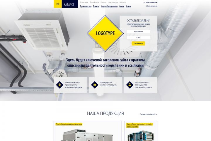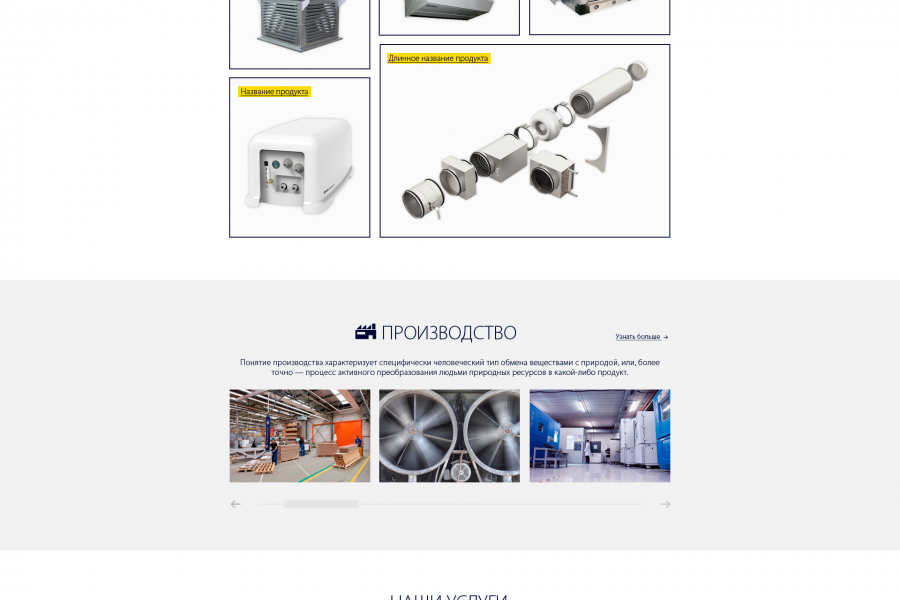 Главная страница для сайта с товарами и услугами. Иконки и фото представлены в качестве примера и не входят в лот. Без верстки. Только psd - шаблон.