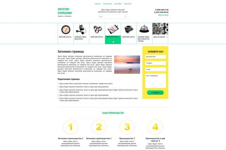 Универсальная страница, подходит для различных сфер деятельности.
