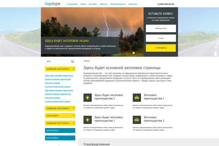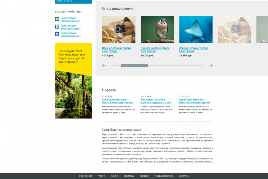Продаю: Главная страница с боковым меню для товаров и услуг