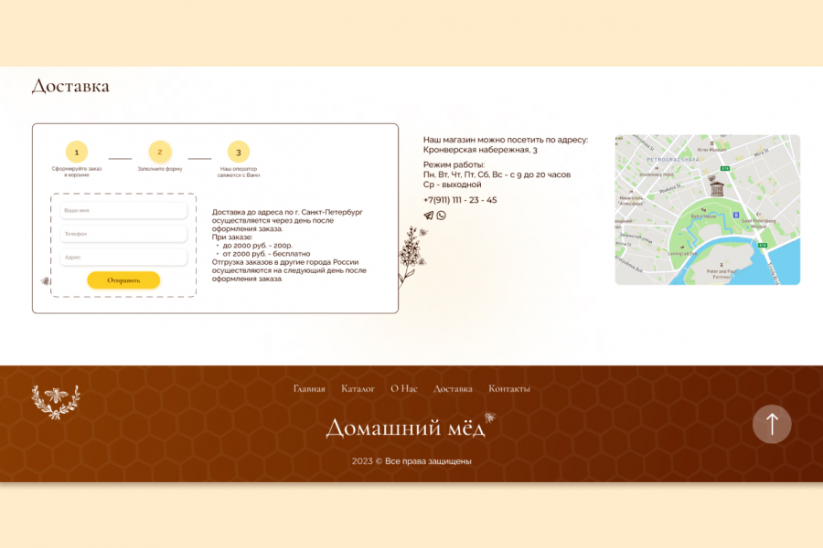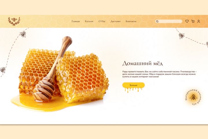 Данная работа была выполнена для портфолио, поэтому готова только главная страница. Возможна доработка внутренних страниц и каталога, замена текста и фото.