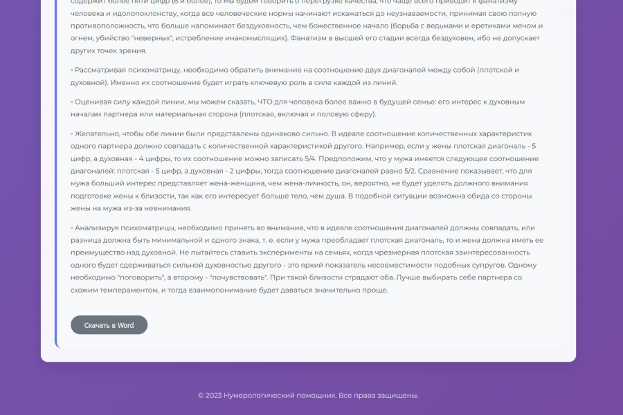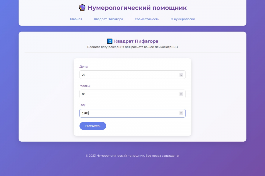 • Автоматический расчет нумерологического профиля (Число Судьбы, Жизненного Пути и др.)